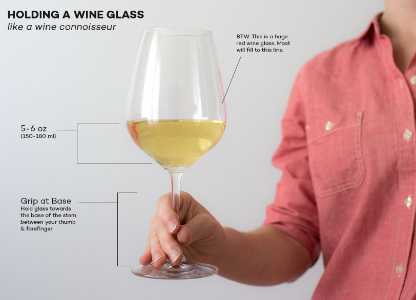 So, now that your wine is in your glass, how are you supposed to handle the awkward top heavy glass? It seems logical to cup the bowl, however your hands will heat up your wine, so hold it by the stem.